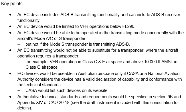 CASA proposes an EC device for use in an aircraft conducting VFR operations.